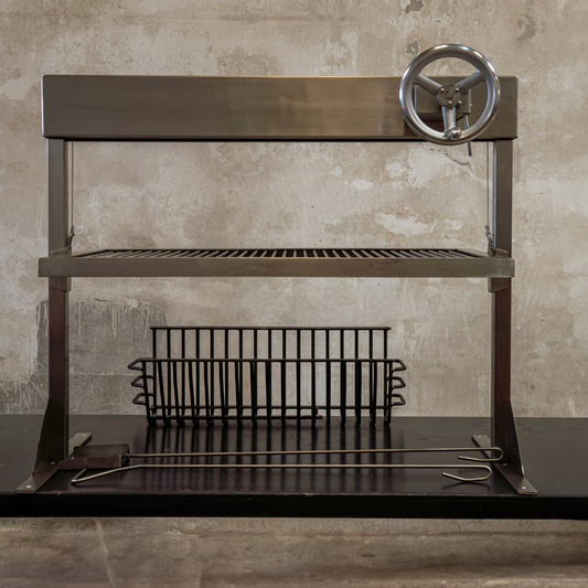 Bandeja base para fuego en acero al carbono 70x75 cm con patas y asas.