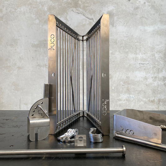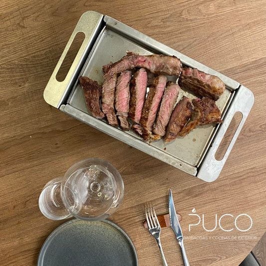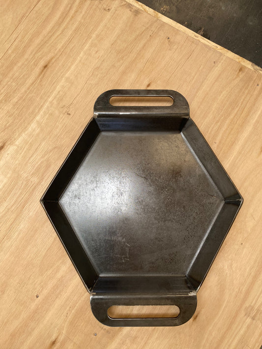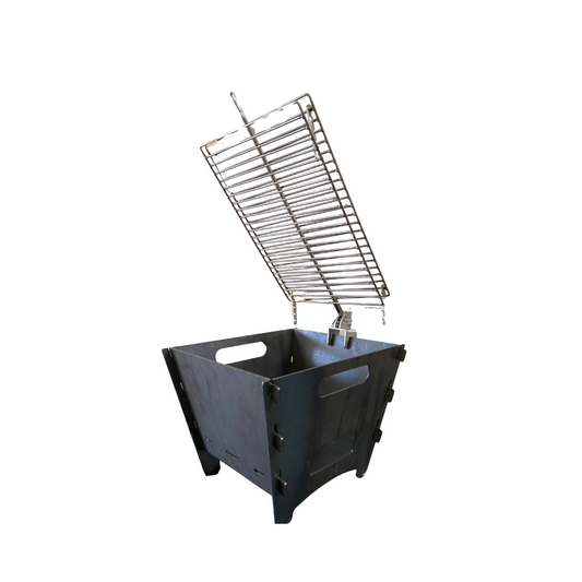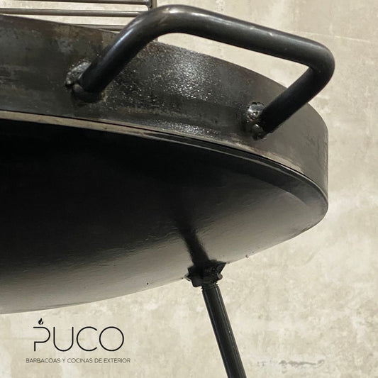 Bandeja base para fuego en acero al carbono 70x75 cm con patas y asas.